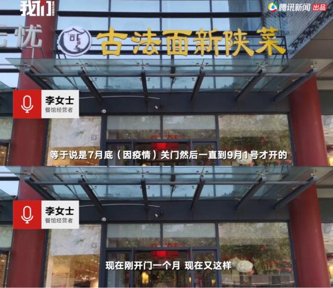 该餐馆经营者表示,自己的门店曾于7月底因为疫情关门停业。图/新京报我们视频截图