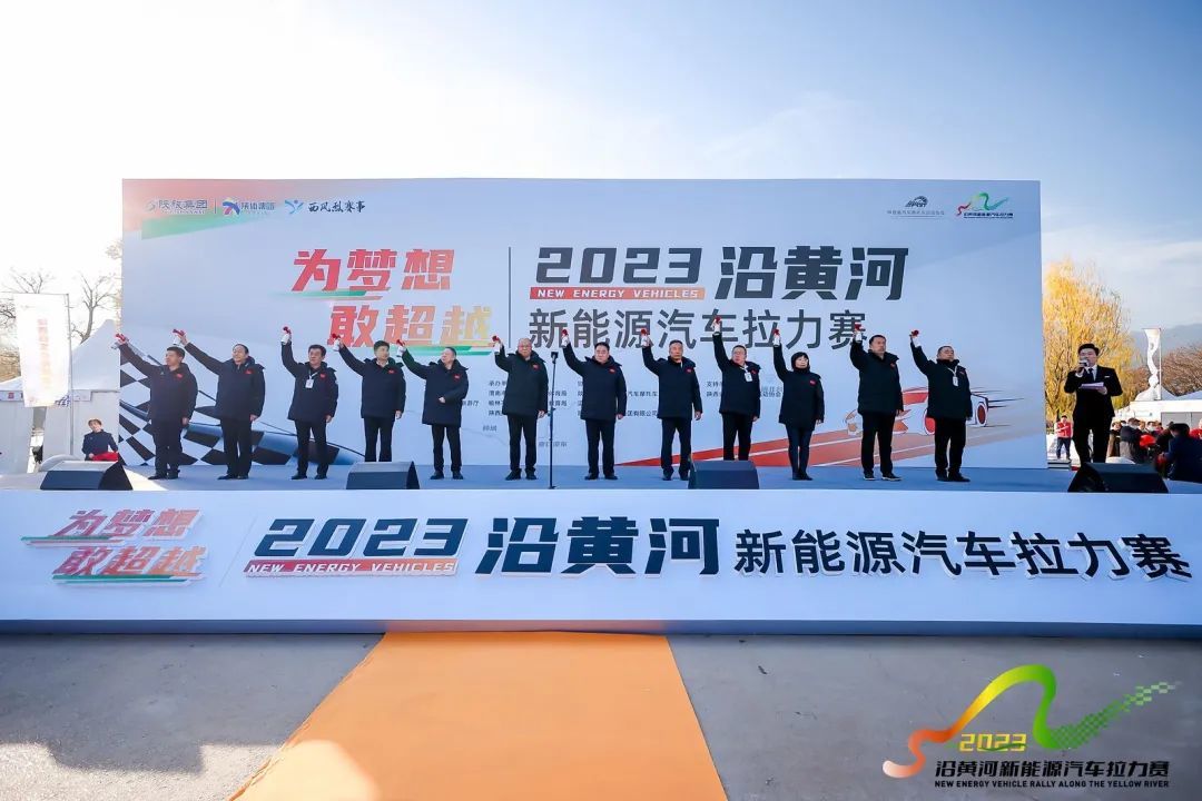 北京时间9时25分,全体领导嘉宾上台鸣笛发令,“为梦想·敢超越”2023沿黄河新能源汽车拉力赛正式开赛!