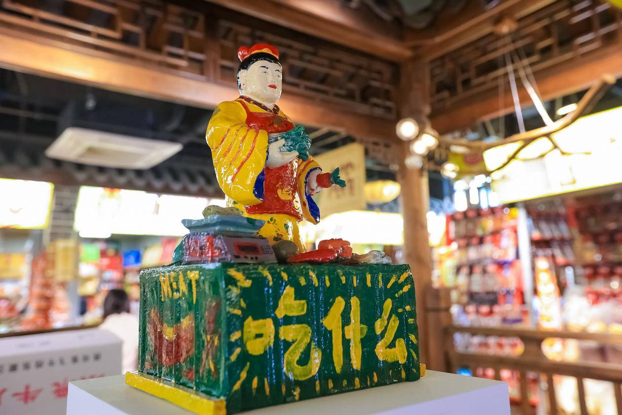 艺术家刘庆元的作品《你要啥子》,结合乡镇美学基调,提炼形成木刻牌匾视觉陈列。艺术家曹羊的声音互动装置《进入同一条河》对菜市场不同区域的音色进行融合采样,随机变化的人流可以触发不同的节点声音。