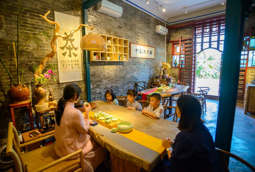 这间由侨房改造保护和开发利用而成立的茶道工作室和花艺工作室,清丽典雅的中式插花点缀在房间的角落,四季花香让这座古老的村庄焕发出新的活力。