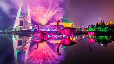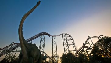 抵达后,游览中华恐龙园(5.5H)。中华恐龙园是一座以恐龙为主题,融博物、科普、娱乐、表演于一体的综合性游乐园。嘻哈恐龙城内有诸多亲子游乐设备,如摇滚恐龙蛋、跳跳龙等,刺激度低,安全性高。二期鲁布拉乐园内疯狂火龙钻、雷龙过山车、探秘飓石阵、尖峰速递、穿越侏罗纪等数十个参与项目分布其间,挑战无所不在。