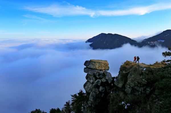 观看日出、晚霞。在庐山风和气爽的早晨,去含鄱口、莲花谷或五老峰去看日出,是件极为有趣的乐事。