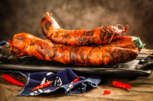 新疆熏马肠是乌鲁木齐旅游特产,在哈萨克族人中十分流行。每到冬季,哈萨克族人家就需要屠宰牲畜,腌制熏肉过冬,熏马肠就是熏肉中的一种。熏马肠脂肪丰富,油而不腻,瘦肥分明,不仅色泽悦目,而且营养价值很高。食用熏马肠时,可以放入些佐料,如孜然、胡椒、花椒、洋葱等,既可煮食,也能够蒸食,吃起来非常有嚼劲,有韧性,让人“一吃就忘不了”!来到乌鲁木齐,记得尝尝这边的传统特色熏马肠哦! 【 详细>>】