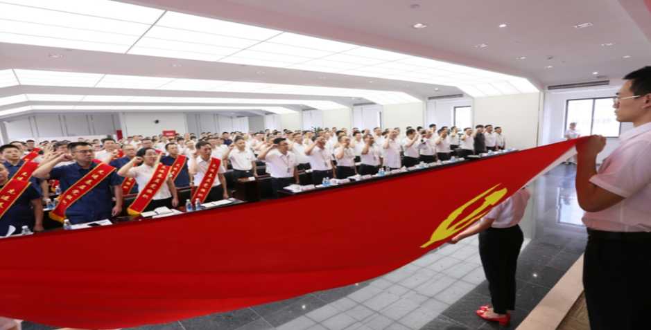 图片说明:四川中烟庆祝建党99周年大会上重温入党誓词