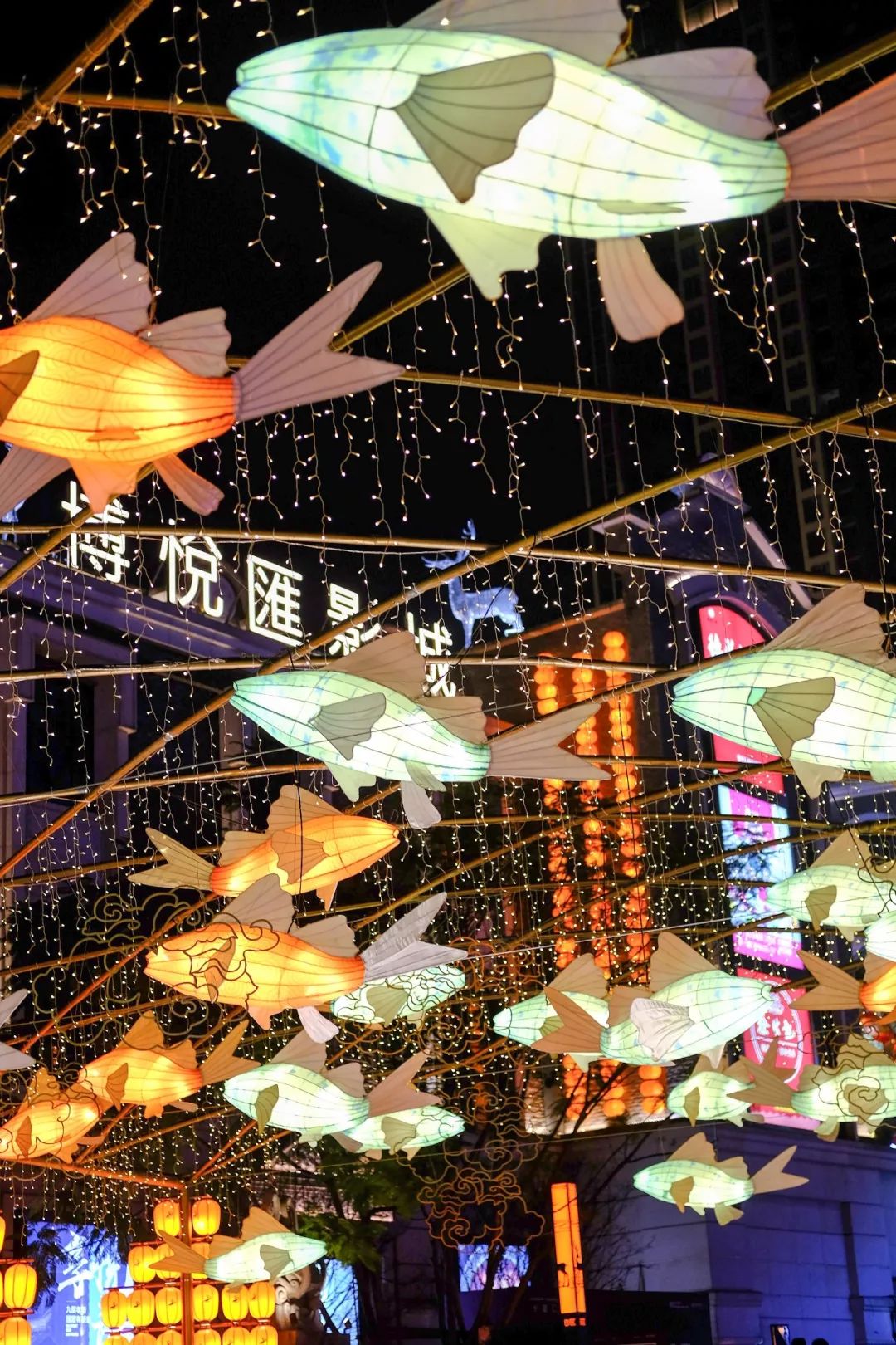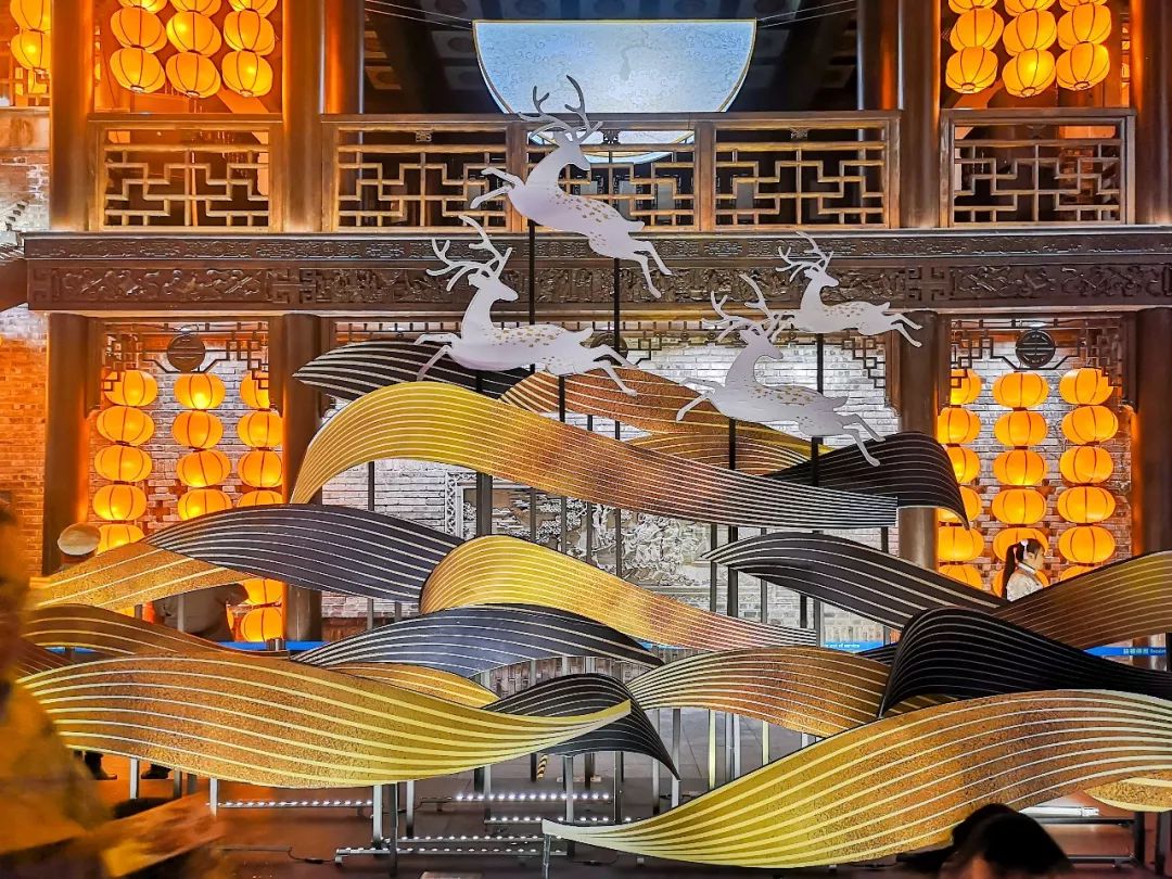 最近,弹子石老街的“千灯万福”灯会,结合老街独有的坡地、廊桥、庭楼、牌坊等景观特点,打造出了如鹿归林、映月祈愿、鱼跃青云、星河梦影等九大主题灯组。
