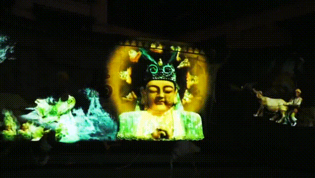与灯会一同被点亮的,还有每晚20:00-21:40准时上演的佛光秀《佛光如幻》。飘散的莲花,慈悲的佛者,五光十色的佛光动效,令浮雕的肌理更加逼真,光影随着剧情跌宕起伏,带来如梦如幻的视觉感受,让人十分震撼。
