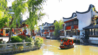 清冽的河水穿行在白墙黛瓦之间,似一幅水墨画布将风景一一呈现。