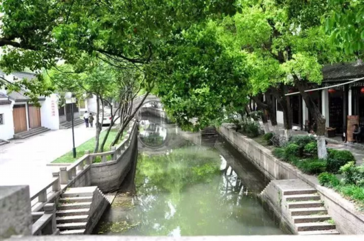河道两边绿意葱茏,有14颗古树名木,其中四颗是超700岁的古银杏,更有上海最古老的白玉兰,远望就是一座被绿色包裹的城镇,成为青浦这座上海后花园的氧吧。