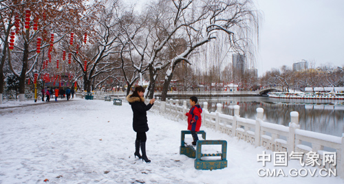 中国气象报通讯员张永勇报道 2月8日晚至9日清晨陕西省宝鸡全市出现了明显的降雪过程,普降大雪,局地暴雪,积雪深度达15厘米。降雪给马年春节增添了祥和的气氛,明显缓解了当前旱情,净化了空气。市民纷纷走进雪的世界,享受雪的快乐。