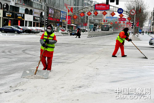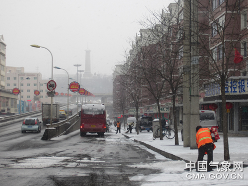 辽宁丹东:迎来春节后首场降雪 气象局积极应对