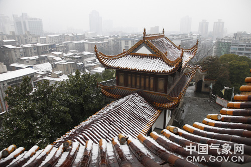 在天心阁上远眺,长沙城覆盖了一层白雪。姚宏权 摄