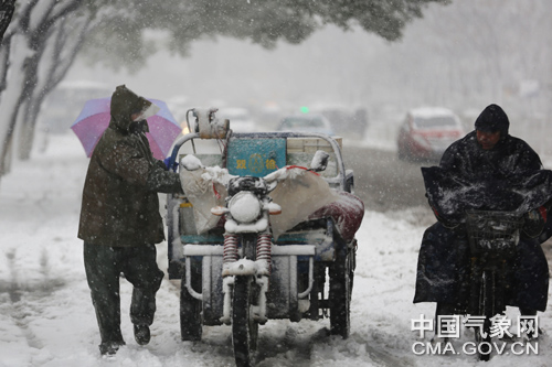 2月9日上午开始,江西省鹰潭市迎来了2014年首场降雪天气。截止到10日11时,全市普降大到暴雪,最低气温降至0℃,最大雪深达6厘米,24小时降雪量为15毫米。中国气象报通讯员桂园园摄影报道