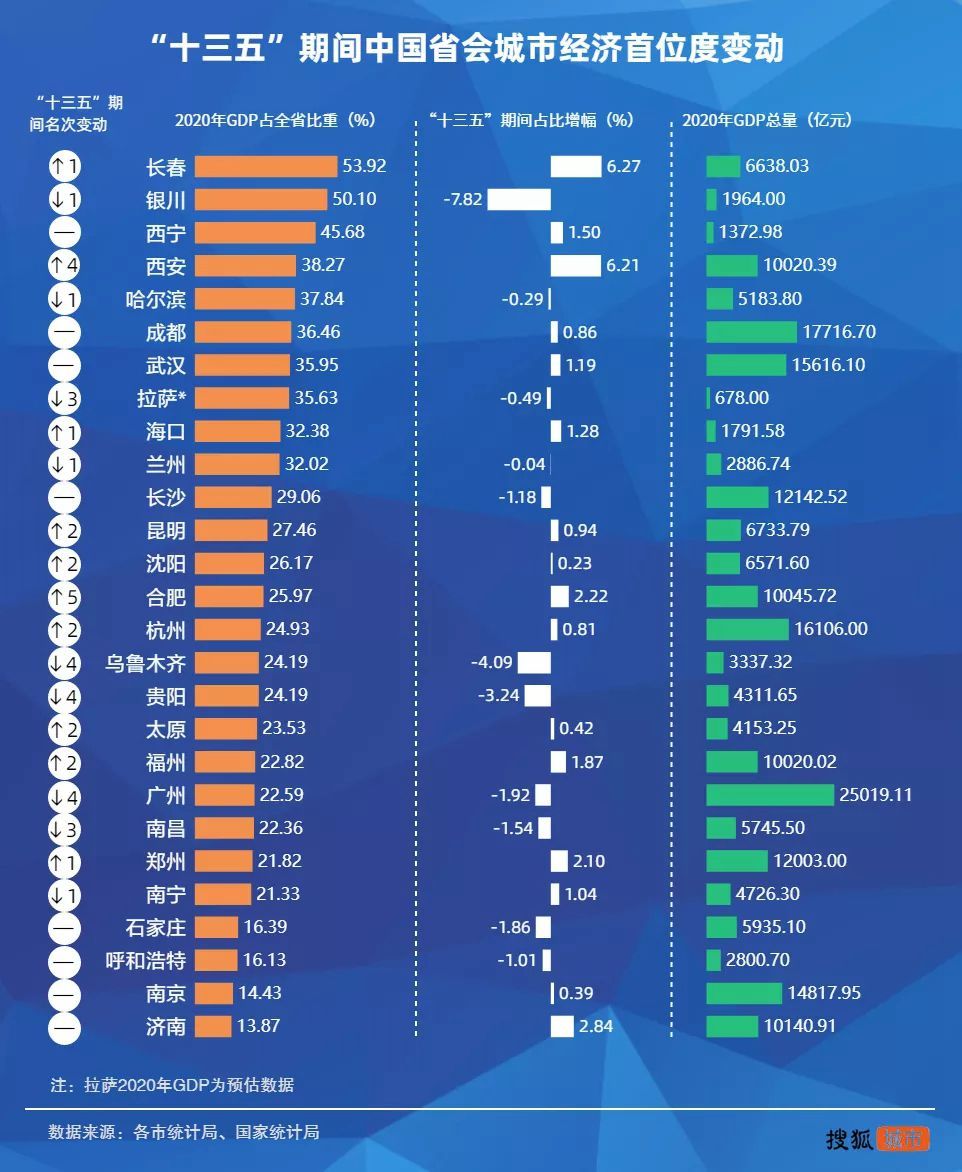 解读:无论是东部沿海还是中西部省份,“强省会”战略已成为共同选择。从全国范围横向来看,2020年南昌无论人口首位度还是经济首位度,在全国都排名倒数。而纵向来看,南昌“十三五”期间经济首位度排名也呈现下降趋势。