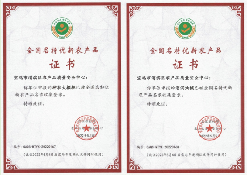 宝鸡新闻网讯 据市农业农村局消息,我市申报的神农大樱桃、渭滨油桃、陇县苹果、陇县核桃4个产品被纳入了全国名特优新农产品名录,并核发由农业农村部农产品质量安全中心颁发的全国名特优新农产品证书。至此,我市已有17个产品被纳入了全国名特优新农产品名录,整体数量位居全省前列。