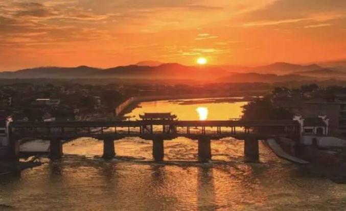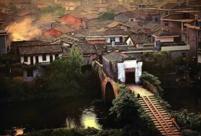 古镇横跨于黎滩河上,长廊飞渡,桥堡耸立,青瓦铺顶,飞檐翘角,至今古风犹在,气度不凡。