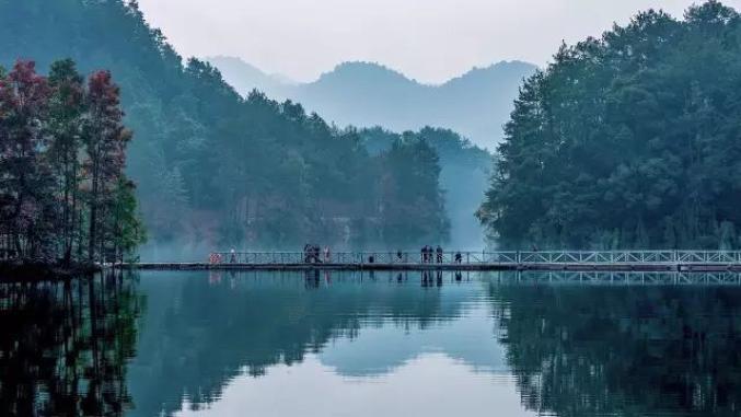 阳明湖位于江西赣州市上犹县陡水镇,是一座面积巨大,风景秀丽的山水圣地。这里时常云雾缭绕,烟雨朦胧,远看时,常常犹如蓬莱仙境。