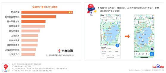 另一方面,《报告》还显示,2020年春节假期中,北、上、广、深、杭作为传统旅游城市依旧稳居前列,江浙一带及“西部三巨头”成都、重庆、西安也是全家出游的热门目的地。与此同时,长达7天以上的长假也激发出了大量主题旅游需求。古镇游、祈福游、家庭游络绎不绝,“南下避寒”与“北上看雪”两条行程路线“并驾齐驱”,广州塔和哈尔滨冰雪大世界预计将成为“避寒”与“看雪”的最热城市。整体而言,今年国内十大热门景区主要集中在北京、江浙沪及成渝地区,其中杭州西湖、北京故宫和晋中平遥古城位列前三。