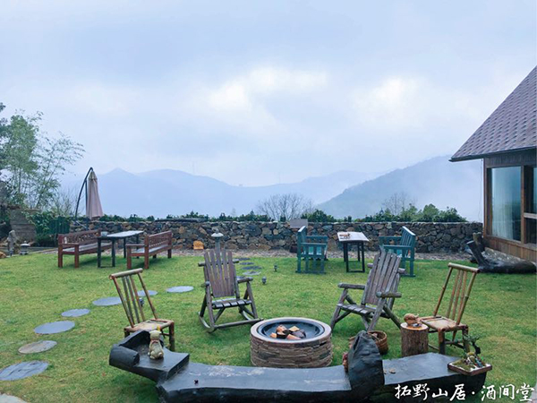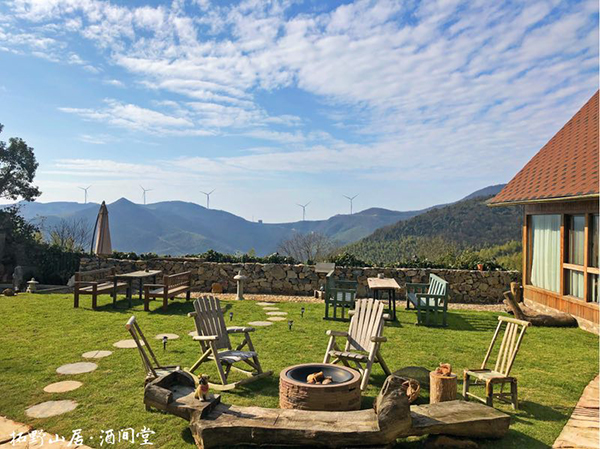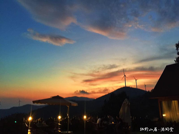 拓野山居民宿位于海拔450米的横溪镇大梅山上,这里既有北欧风格的小木屋,也有传统白墙黛瓦江南建筑风格的庭院。视野佳,院子面前就是落落山谷,周边有大片的竹林、茶园。站在院子里能欣赏到落日余晖的迷人场景,日薄西山时,远山的风车一线排开,随风转动,云蒸霞蔚中宛若仙境。