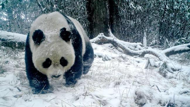 ▲ 在冬天气势凛凛的野生大熊猫。供图/甘肃白水江国家级自然保护区管理局