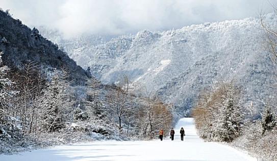 ▲ 官鹅沟大景区富有层次感的雪景。图1 雷古雪山。 供图/官鹅沟大景区管委会;图2 官鹅沟雪景。 摄影/刘辉;图3 冰瀑。 摄影/张燕宏;图4 官鹅沟雪景。 摄影/杨清明