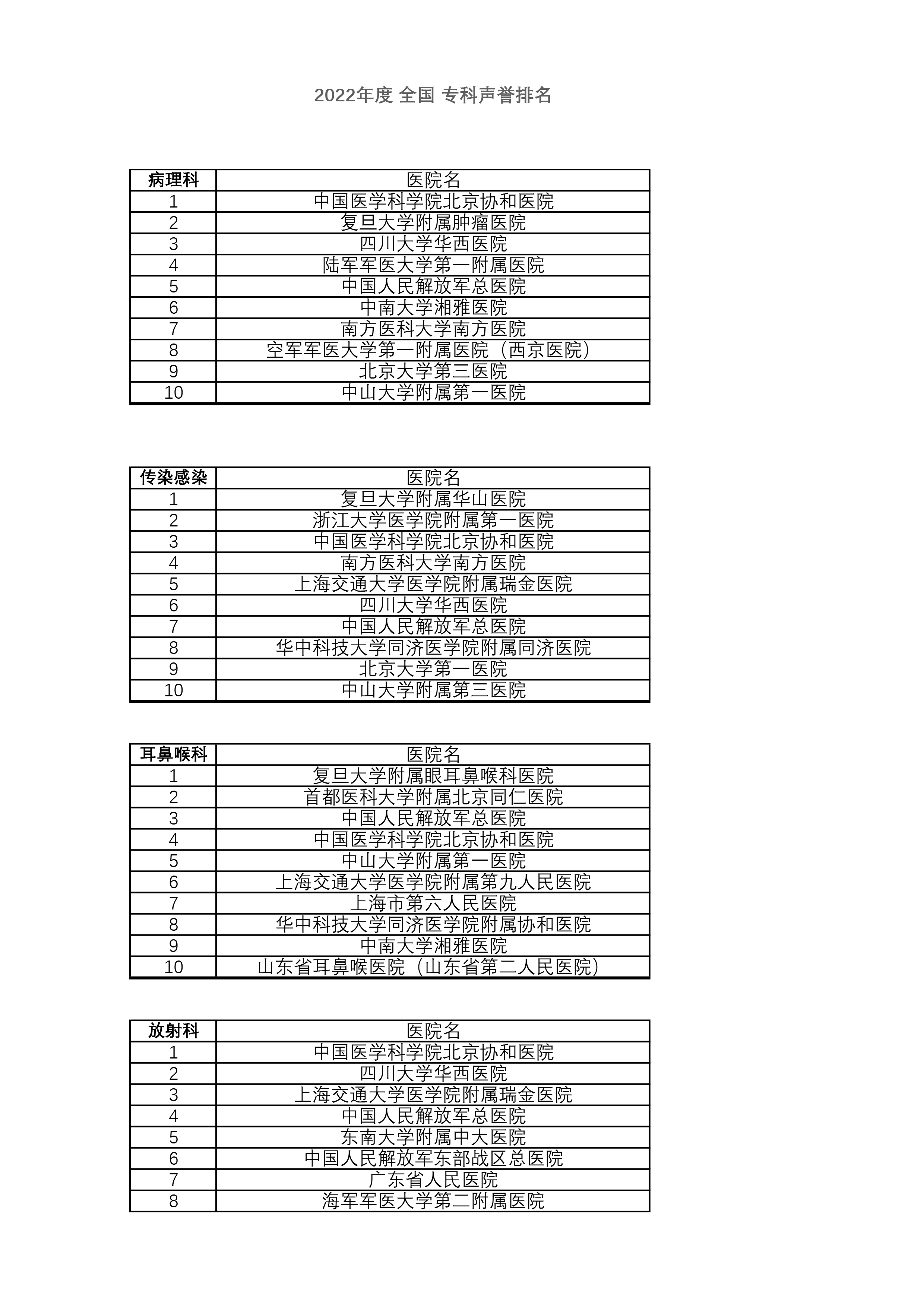 复旦版《2022年度中国医院专科声誉排行榜》覆盖45个专科