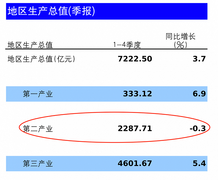 2021年,昆明二产占GDP比重仅有31.7%,不及三产的一半,且还出现了负增长。