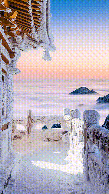 尤其是一场雪后,蓝天、白雪、雾凇、 金殿、日出、云海…… 一不小心,就误入了“天宫”。