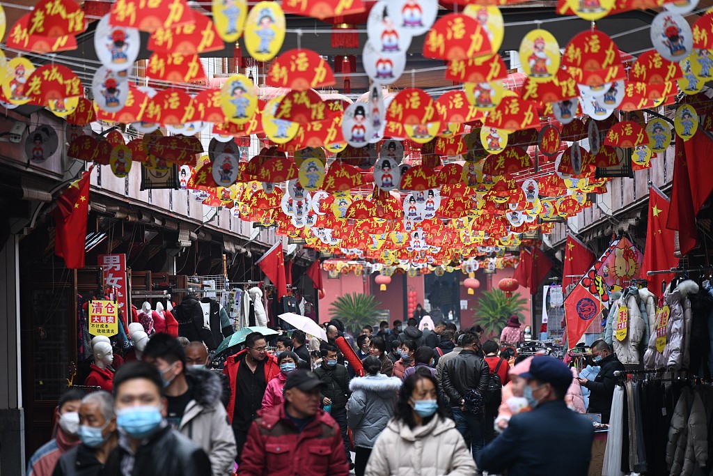 2021年02月11日,合肥,市民在合肥市城隍庙游玩购物。视觉中国 资料图