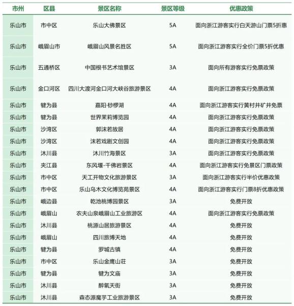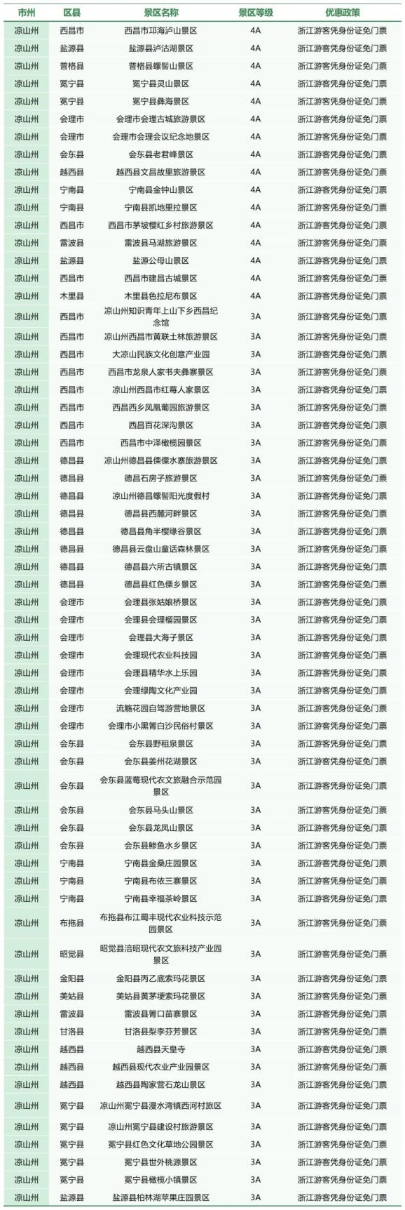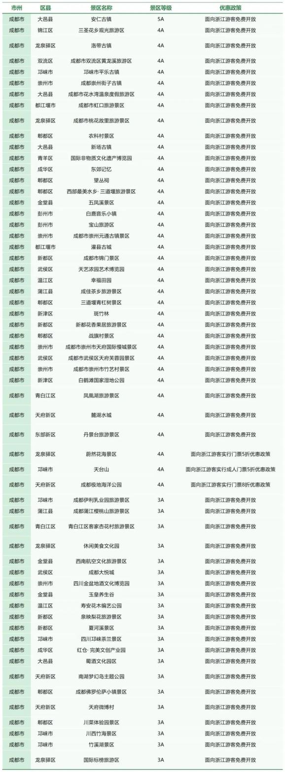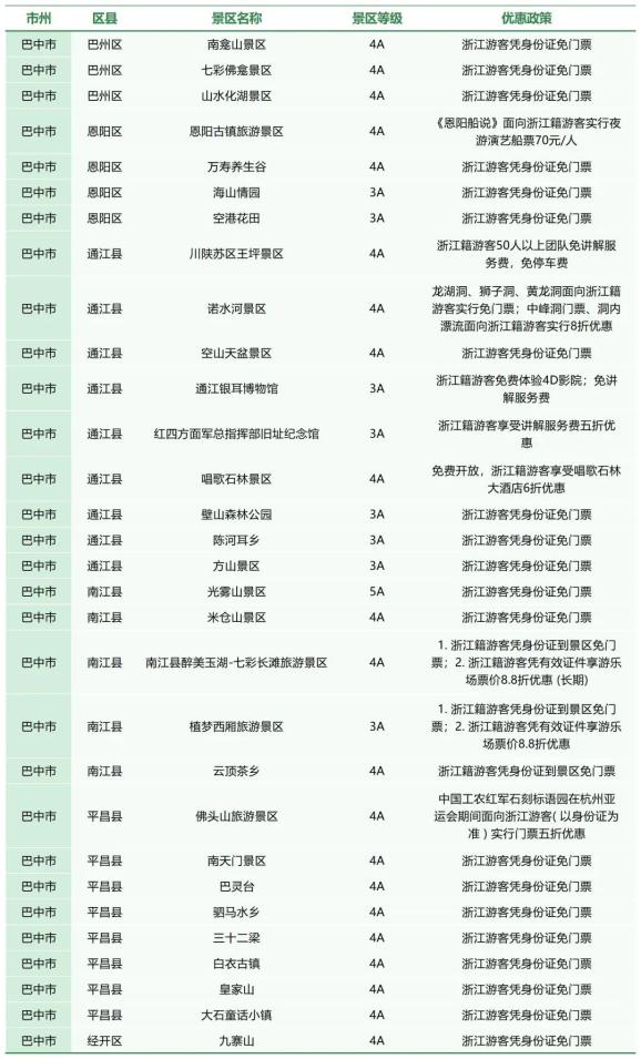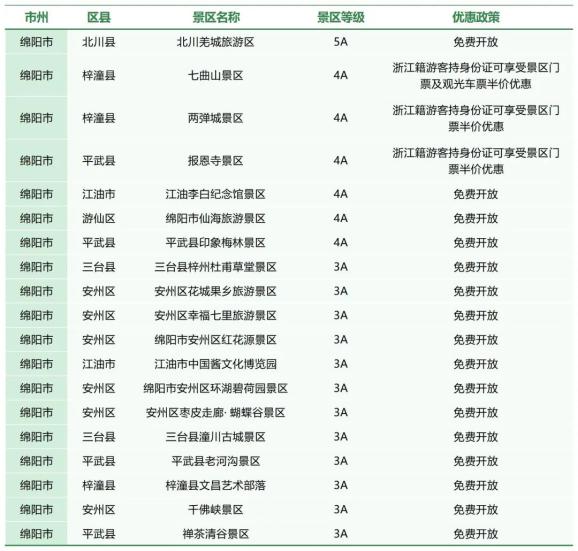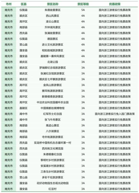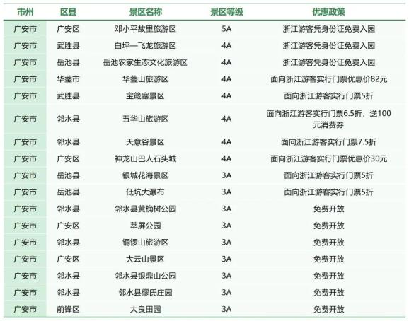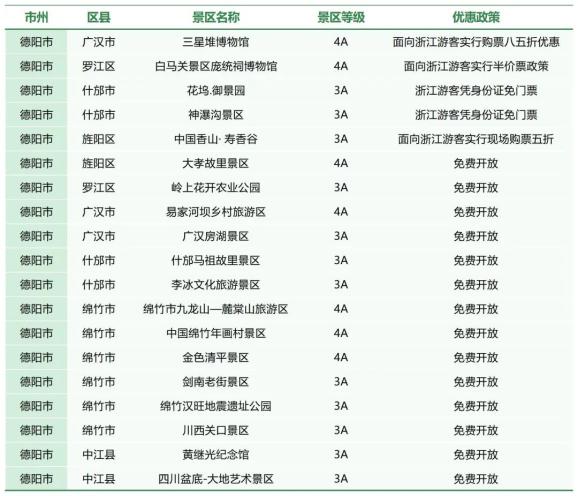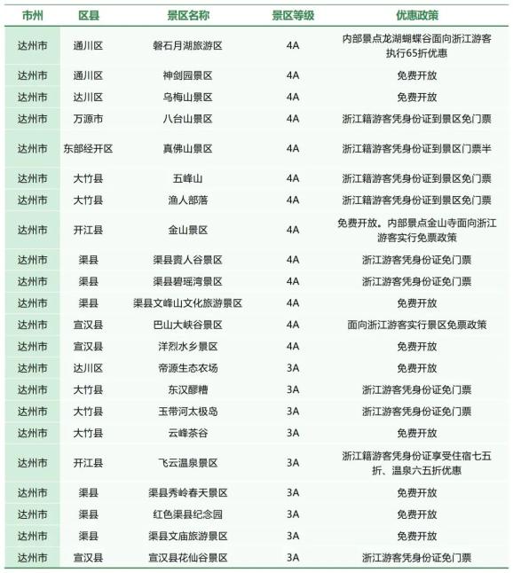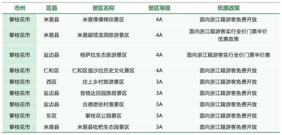 备注:各市州对浙川东西部协作对口援建地游客旅游景区门票优惠政策继续执行。
