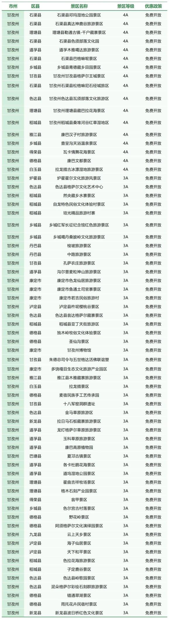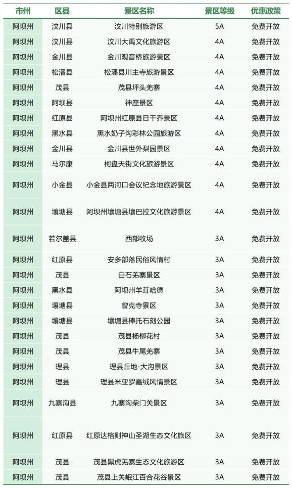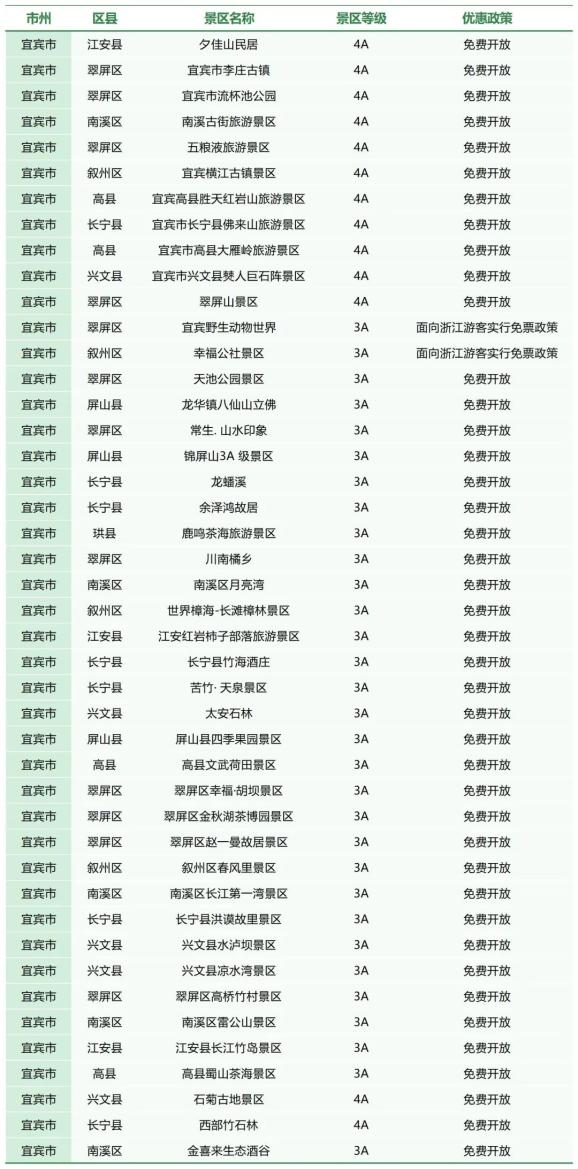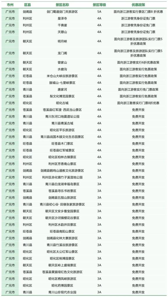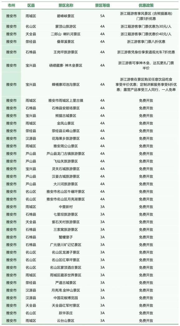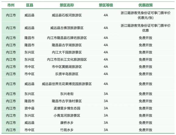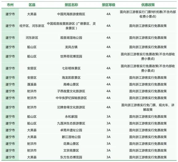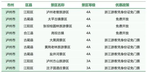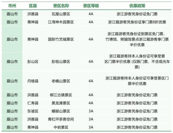 备注:各市州对浙川东西部协作对口援建地游客旅游景区门票优惠政策继续执行。