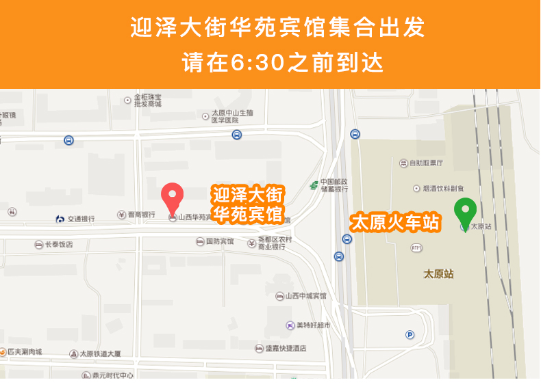 3. 接送说明:需自行集合,6:30前在迎泽大街华苑宾馆附近集合;