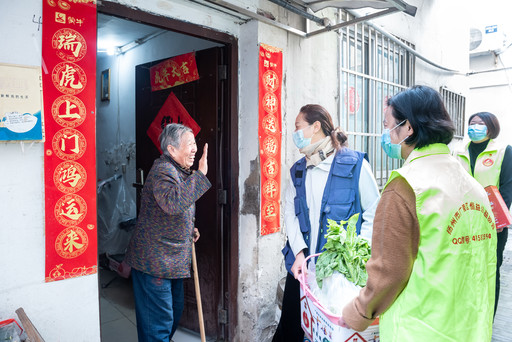 ② 江苏省扬州市广陵区东关街道徐凝门社区工作人员为低保对象、特困人员上门送“幸福菜”。