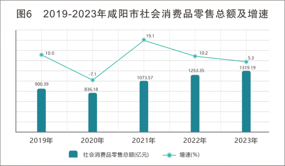 全年社会消费品零售总额1319.19亿元,比上年增长5.3%。按经营地分,城镇消费品零售额增长6.4%,乡村增长1.9%。按消费类型分,餐饮收入增长6.5%,商品零售增长5.0%。