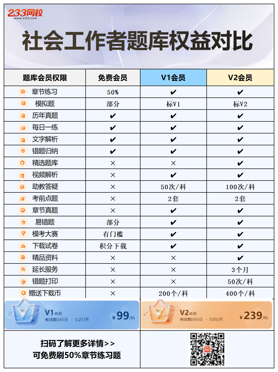 🈶大家考前都在用什么刷题?有人说233题库是好,但是要收取题库会员费 📢学霸君想要告诉大家: ㊙️233题库也有部分题目是可以免费开放的,免费题量还不少! ㊙️题库会员也是可以免费薅的,下载233app,答题闯关、知识点打卡、模考大赛等参赛都有v1题库会员相关奖励。 ㊙️99元就能用一年,平均一天0.27元。你想呀,每年考前冲刺那么多学员充会员就为了一套”考前点题“,还不如趁备考初期直接拿下。