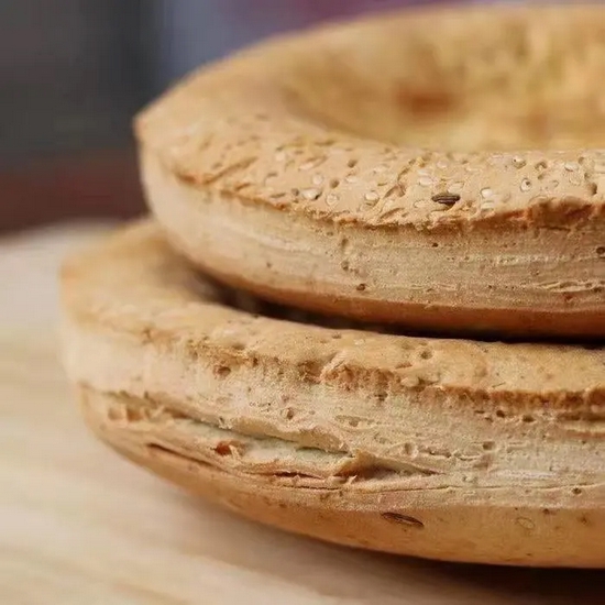 文王锅盔,是宝鸡境内非常普遍的一种特色美食。它形似锅底,大如锅盖而得名,历史悠久,制作工艺精细,一直以干、酥、白、香著称。据传,文王锅盔最早始于周文王之时,一直都是作为客商的携带干粮远走他乡。到光绪时期的张聪、刘有学和民国时期的邢呆子、赵乾儿、张广善,再到解放后的庞天红、席金卵等,都是做锅盔的能手。