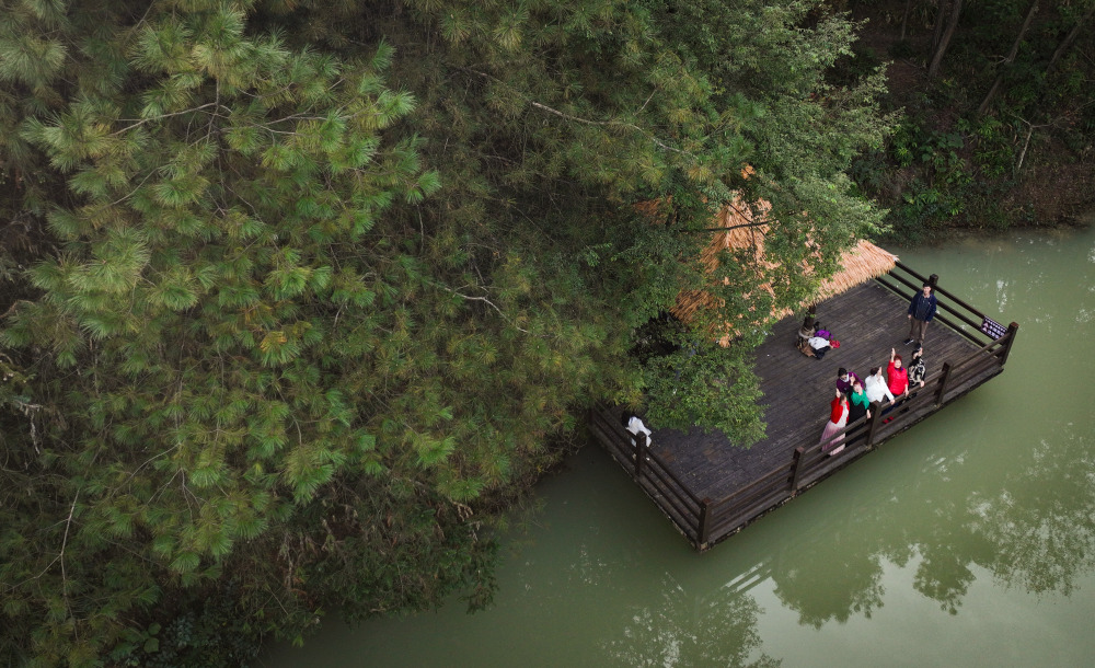 市民在九凤瑶池游玩赏景。首席记者 龙帆 摄