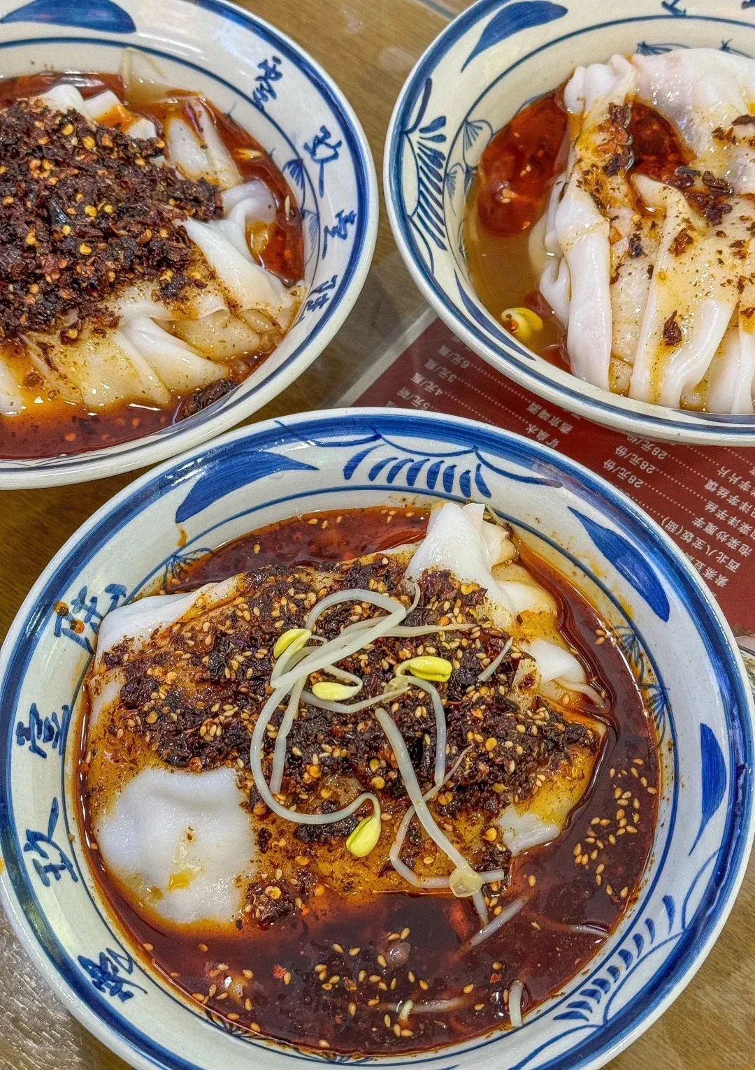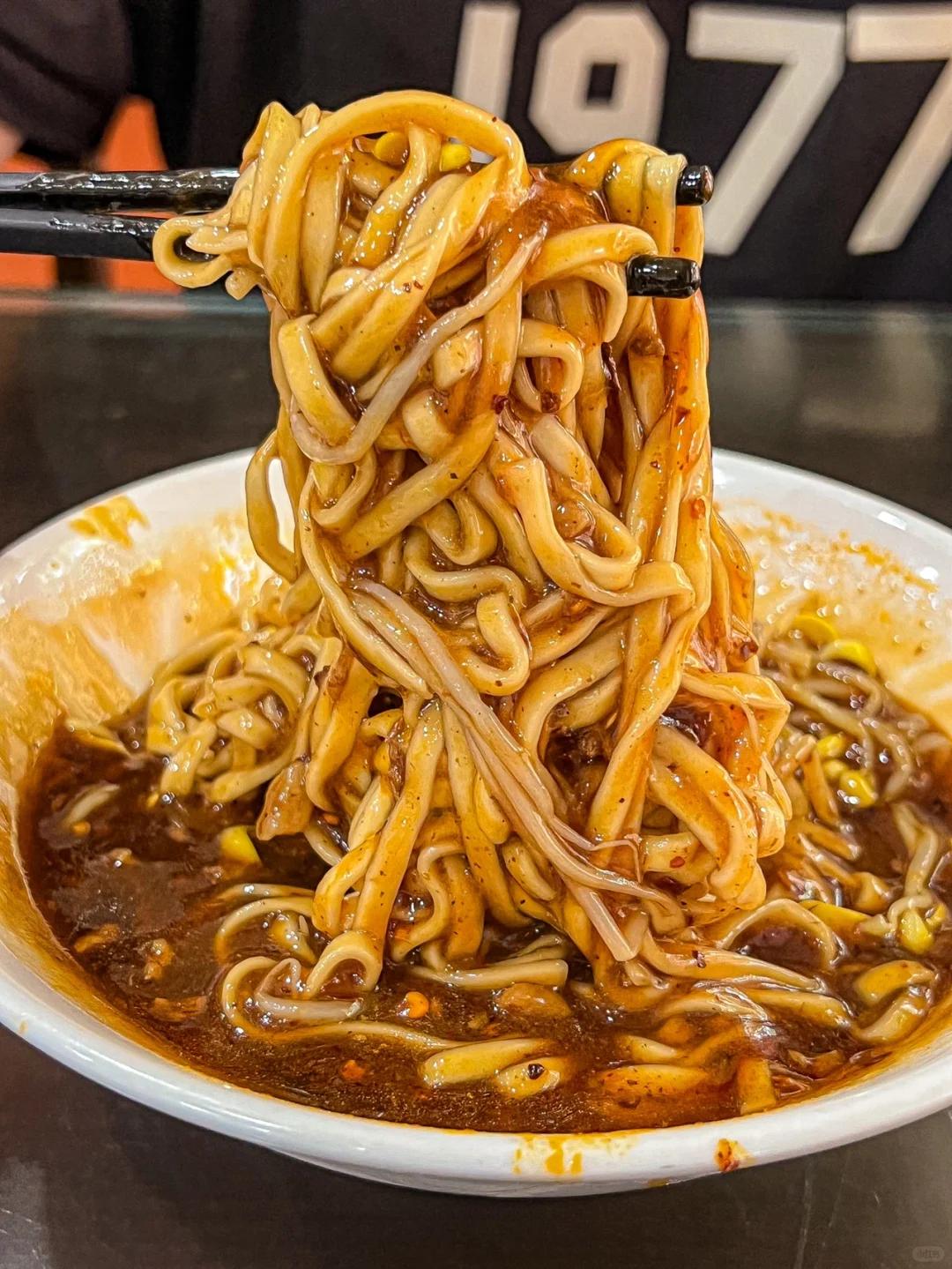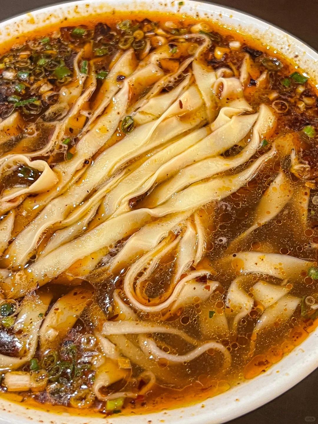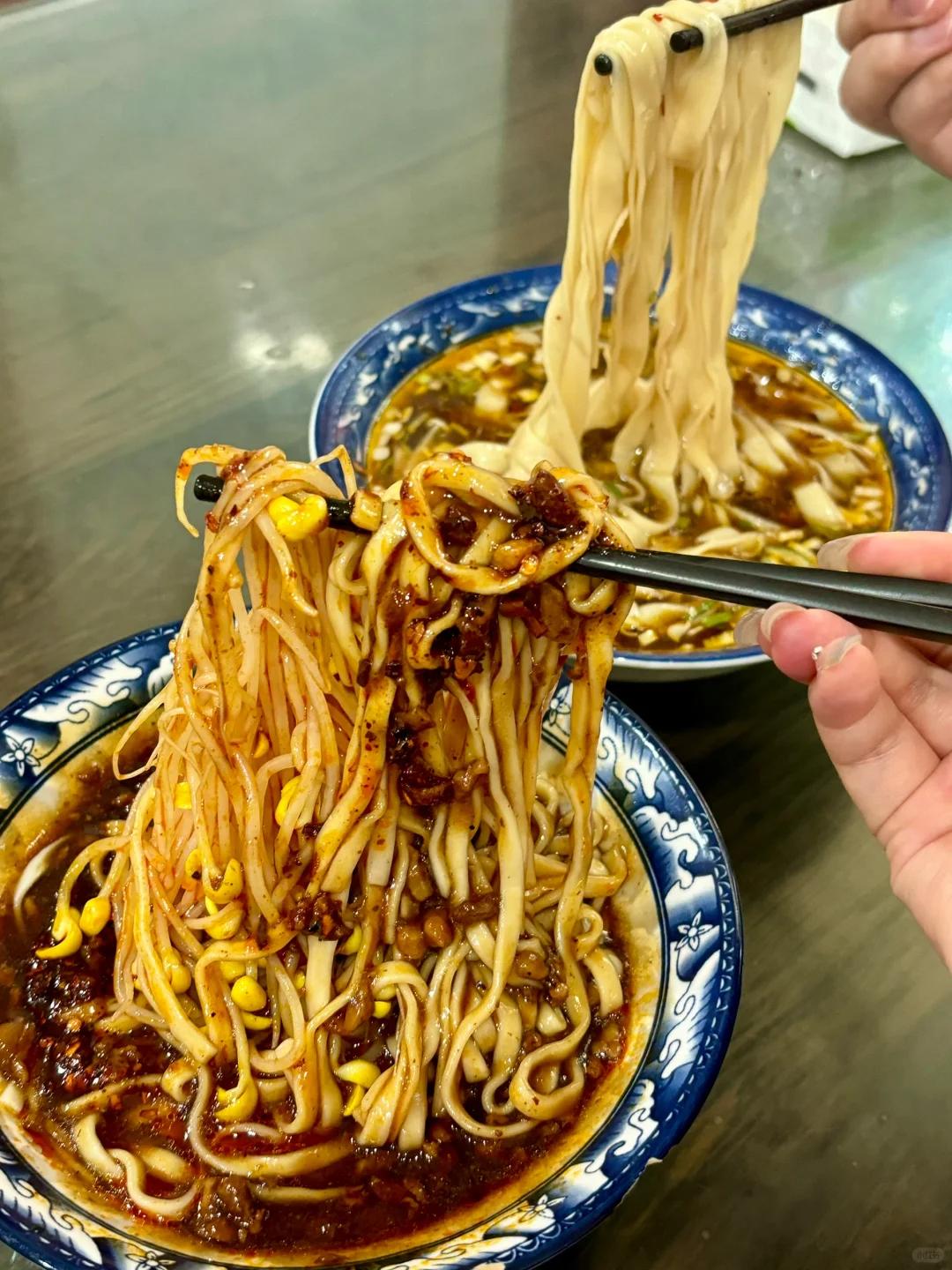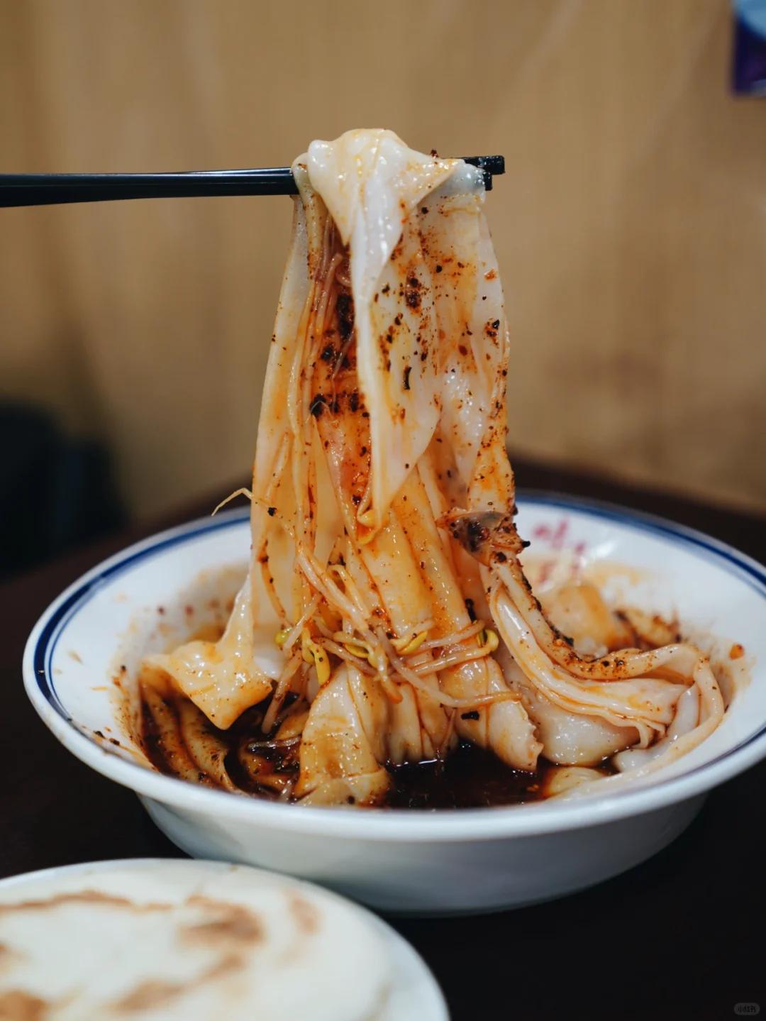 再配些黄豆芽、土豆丝、黄瓜丝,吸溜一口嗦进嘴里,面皮软糯弹韧,配菜爽脆可口,裹挟着红艳艳的辣油,又香又辣又鲜。