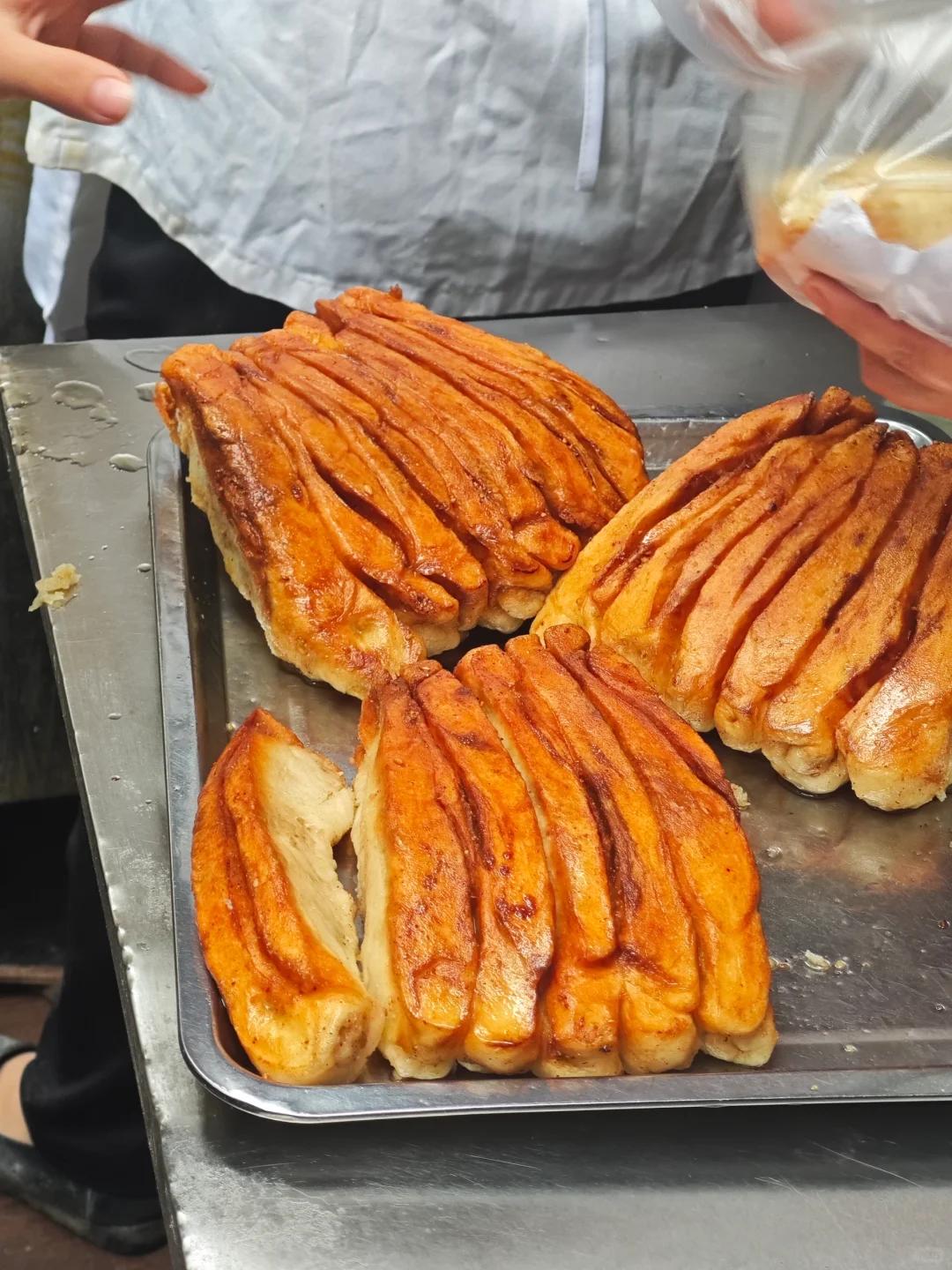 在汉中人的早餐桌上,也少不了锅边油花子,当地人也爱管它叫汉中锅贴,其实有些像是油炸过的大馒头。