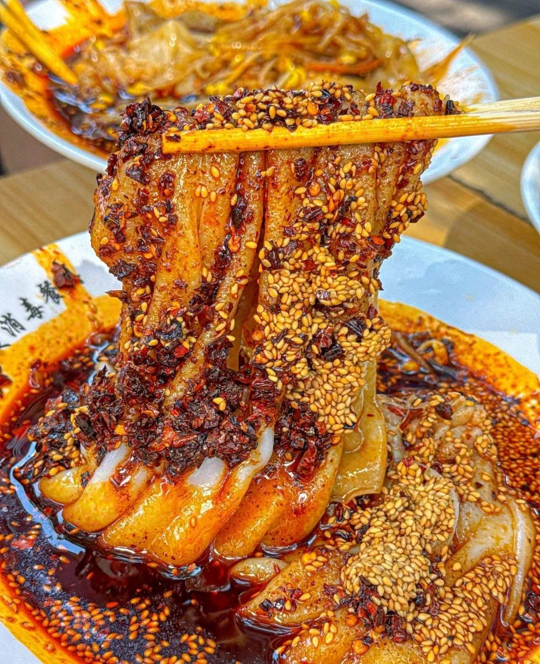 淋上的油辣子则是灵魂所在,需得用上好的凤县线椒+朝天椒磨成粉状,再添些芝麻,辣油调香,那股子香辣才带感,闻着就让人犯馋。