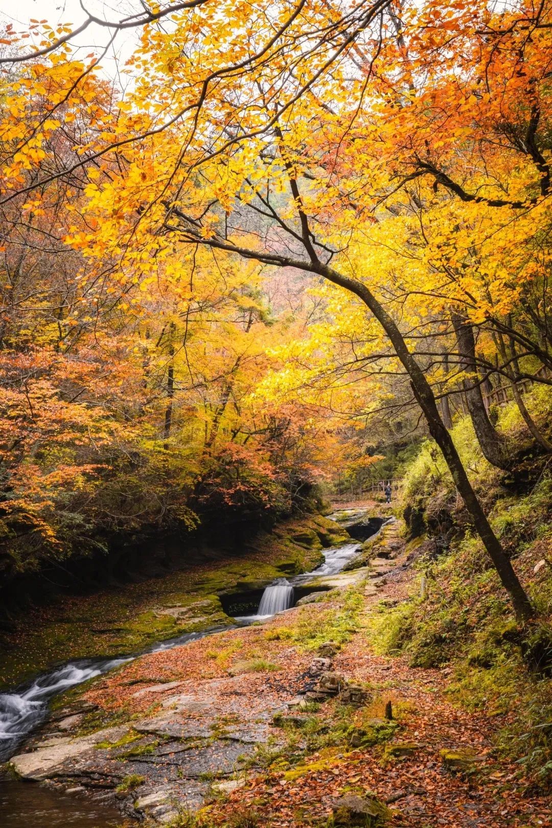 满树秋色,万山红遍,行走在宁静的山谷间,水声与落叶声交织,演奏出一曲曲秋之奏鸣曲。