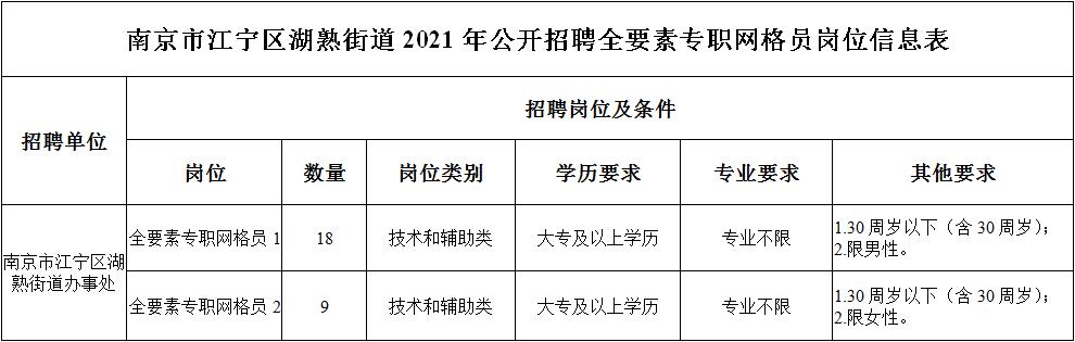 本次公开招聘全要素专职网格员公告将在江宁人社服务平台()和湖熟党建网()上发布。