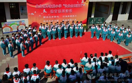 ——“仪式育德”庄重教育丰富多彩。为充分发挥庄重仪式和重大典礼的育人功能,积极营造弘扬社会主义核心价值体系的文化氛围,使学生在庄重典雅的仪式教育中获得强烈的内心感受和神圣的心理体验,坚定理想信念,提高文明素养,逐步形成正确的世界观、人生观和价值观,临近毕业之际,金台区在各中小学、幼儿园开展“毕业典礼”创新案例征集评选活动。以店子街中学、金台高中、东仁堡小学等学校为代表的多所学校的毕业典礼活动隆重高雅,触动了学生的内心,感染了师生的心灵,切实起到了仪式育人的目的,同时受到了该区表彰。以此活动为启发,各校精心设计,大力创新活动形式,规范组织升国旗仪式、入团入队、成人仪式等活动,开展庄重严肃、内涵丰富、生动活泼的庄重仪式教育活动。东仁堡小学、铁路小学的升旗仪式活动庄严神圣,激发师生的爱国情愫;西街小学、店子街小学、陈仓路小学等入队仪式,在孩子们的幼小心灵播撒了积极上进的种子;东仁堡小学“最美少年”评选、金台高级中学的“十八岁成人礼”仪式,使学生在活动中体验神圣、自豪、责任和感激,激发爱祖国、爱家乡、爱学校、爱学习、爱老师的情感。