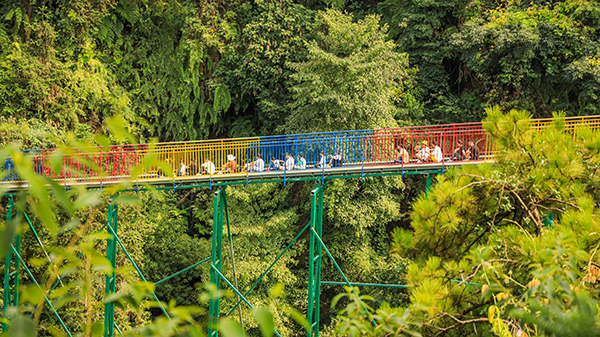 侠客山水,梦回千年。迎龙峡风景旅游区位于巴南樵坪山,依山而建,海拔700米,负氧离子丰富,有20多个游乐项目,还有城区主城唯一的5D玻璃桥,天然的瀑布峡谷景观,令人兴旷神怡、感受大自然的鬼斧神工,幽深的峡谷竹林步道和瀑布客栈,令人仿佛置身于武侠世界。景区占地面积1500多亩,涵盖影视拍摄、休闲旅游、餐饮垂钓,获“全市乡村文化乐园”称号,成为乡村文化建设第一批示范点和中小学社会实践教育基地。面对新时代,迎龙峡为游客退出崭新的游玩体验:一是休闲便捷迎龙峡,景区海拔近700米,负氧离子丰富,平均温度比城区低4-5度,空气清新,游客从主城驱车30分钟即可到达,适合周末度假。二是影视古风迎龙峡,营造影视武侠穿越风,各大电影电视剧到此取景,风景优美的迎龙峡谷吸引粉丝打卡无数!三是惊险刺激迎龙峡,目前已拥有各类极限挑战项目近25个,成功接替洋人街,成为主城旅游首选全家福式板块。5D全景玻璃桥、高空玻璃漂流、步步惊心、高空速滑、七彩飞碟已跻身重庆人必到的网红打卡点。
