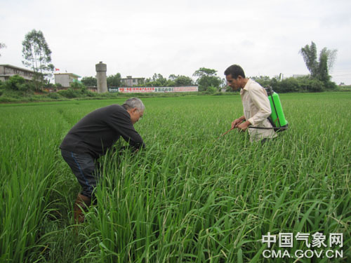 中国气象报通讯员黄文海 黄汝红报道 目前,广西壮族自治区钦州市的晚稻生长正处于发育及产量形成关键期,而近期受天气影响局部地区晚稻病虫害高发。为了有效控制晚稻病虫害,最大限度地减少产量损失,钦州市气象局积极采取措施为晚稻病虫害的统防统治工作提供气象保障服务:一是及时、主动为植保部门提供防治适期的天气趋势预报;二是制作发布病虫害发生发展气象条件等级预报,建议植保部门加强病虫害的监测工作,抓住有利天气时机施药防治;三是派出农气人员,深入田间地头,开展病虫害防治技术的宣传指导。