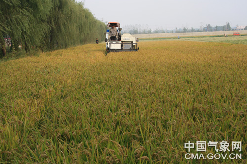 中国气象报通讯员刘惠报道 民谚“立秋十日遍地黄”,素有“鲁南粮仓”之称的山东省临沂市郯城县40万亩水稻喜获丰收。