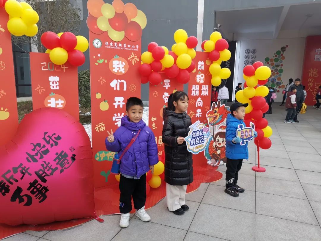 龙年校园焕新颜。一走进杨凌高新第四小学校门,“龙行龘龘启新篇,前程朤朤向未来,欢迎同学们回校”几个大字在电子屏上滚动播出。在校门口,学校老师列队迎接学生们归来。校园内,迎新吉祥物,开学背景墙,龙年花灯展、风铃展等学生作品展,以及游戏《鱼跃龙门》等活动,聚足了人气,让新学期的欢乐气息扑面而来。