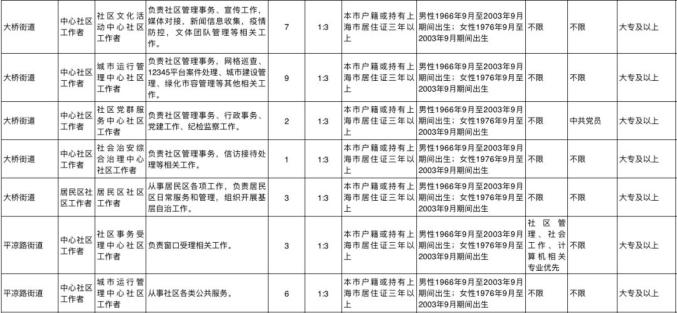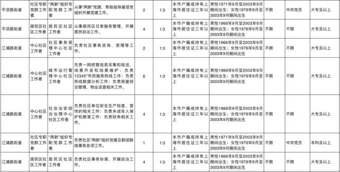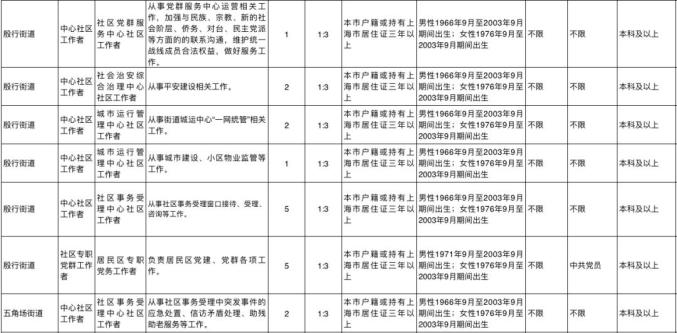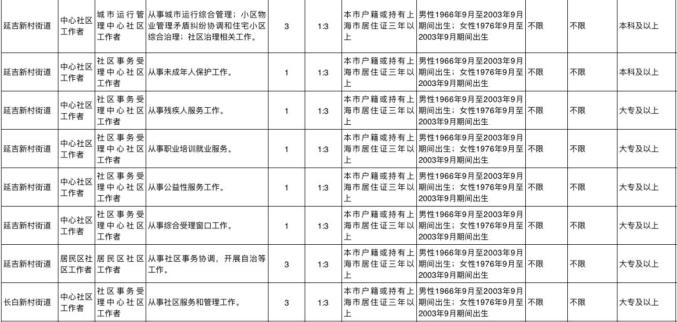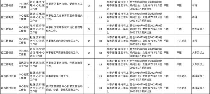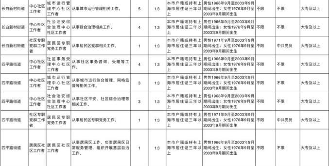 *具体职位要求详见《杨浦区2021年度社区工作者招考简章》(以下简称《招考简章》)。