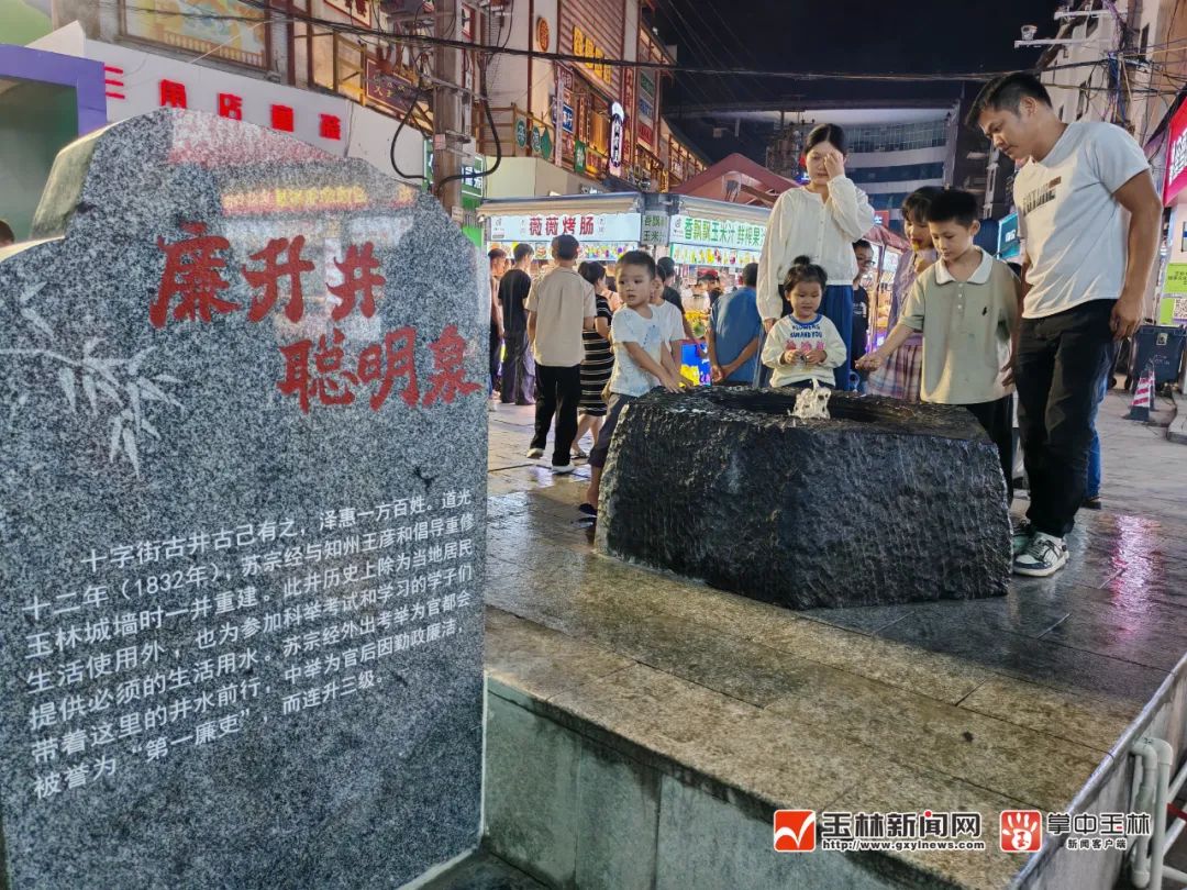 “妈妈,你看,这口古井出水了!”9月25日晚,解放路南侧与第二电影院之间的古井再现“泉水”,成了一道特别的风景线,市民纷纷走上前了解古井的历史。据了解,在前期十字街改造过程中,从安全角度只是把古井围挡起来。为了突出十字街的文化历史,挖掘了古井的历史,古井有了名字:廉升井聪明泉,并通过技术手段让古井再现“泉水”,让更多人了解古井历史。