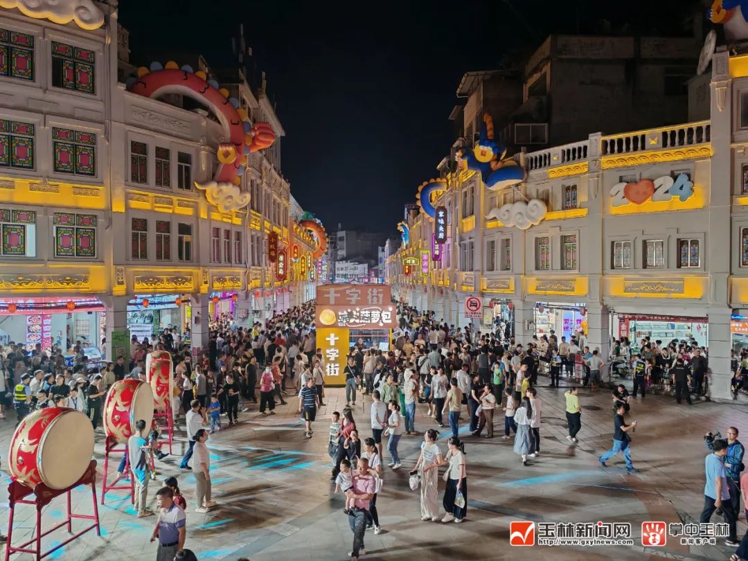近日 第二届玉林十字街城事文化艺术节开幕 当天晚上 十字街人流涌动,热闹非凡