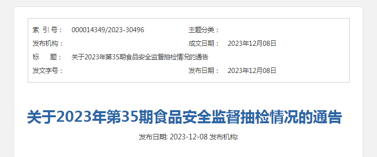 山西省市场监督管理局关于2023年第35期食品安全监督抽检情况的通告
